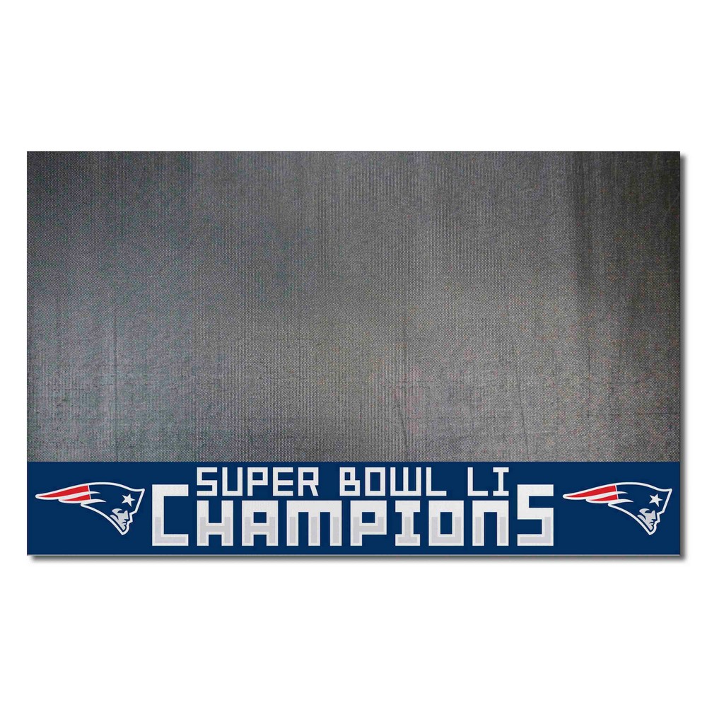 | New England Patriots Vinyl Grill Mat - 26in. x 42in., 2017 Super Bowl LI Champions Made of 100% vinyl Universal size - fits under most grills Prevents spills from soaking in and staining Oil, flame, and UV resistant Non-skid surface keeps grill in place Easily cleaned with a water hose NFL - New England Patriots in Massachusetts NFL National Football League |