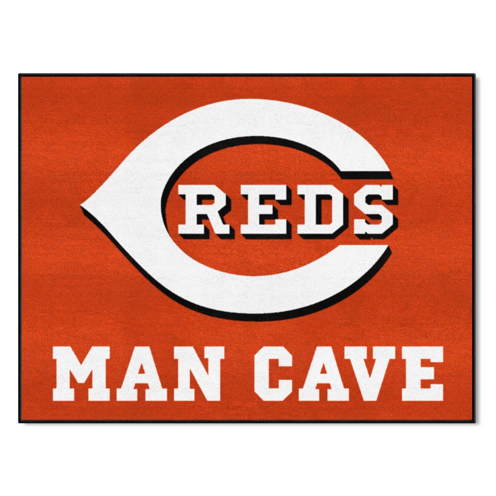 | Cincinnati Reds Man Cave All-Star Rug - 34 in. x 42.5 in. 9 Ounce, 100 % Nylon Face Recycled vinyl backing for a durable and longer-lasting product Machine made and tufted in the USA Non-skid backing with serged borders for added durability Machine washable; vacuum regularly and spot clean for any easy and quick clean Officially licensed and chromojet-printed in true team colors for vibrant, lasting color MLB - Cincinnati Reds in Ohio MLB Major League Baseball |