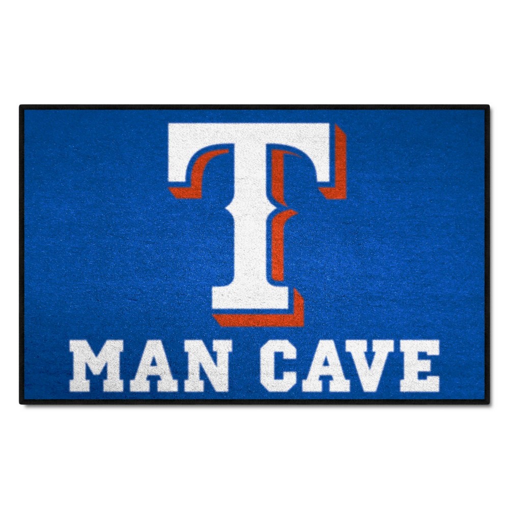| Texas Rangers Man Cave Starter Mat Accent Rug - 19in. x 30in. 9 Ounce, 100 % Nylon Face Recycled vinyl backing for a durable and longer-lasting product Machine made and tufted in the USA Non-skid backing with serged borders for added durability Machine washable; vacuum regularly and spot clean for any easy and quick clean Officially licensed and chromojet-printed in true team colors for vibrant, lasting color MLB - Texas Rangers in Texas MLB Major League Baseball |