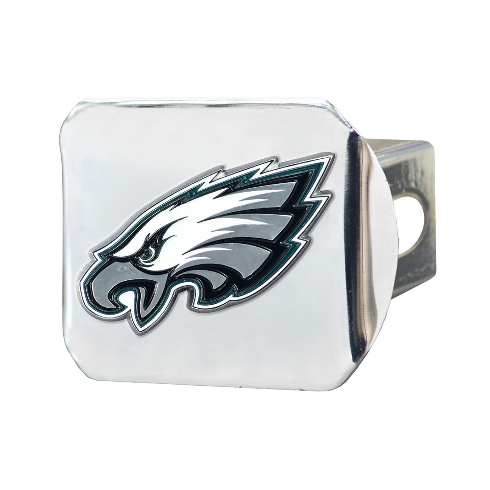 | Philadelphia Eagles Hitch Cover - 3D Color Emblem Completely wraps your hitch to keep all debris out Fits all 2 in. Class III hitches for a secure installation Made of chromed metal for a sleek design 3-D molded design to clearly outline the team logo Attaches without use of tools for an easy on and off; pin is not included Keeps your hitch clear of debris NFL - Philadelphia Eagles in Pennsylvania NFL National Football League |