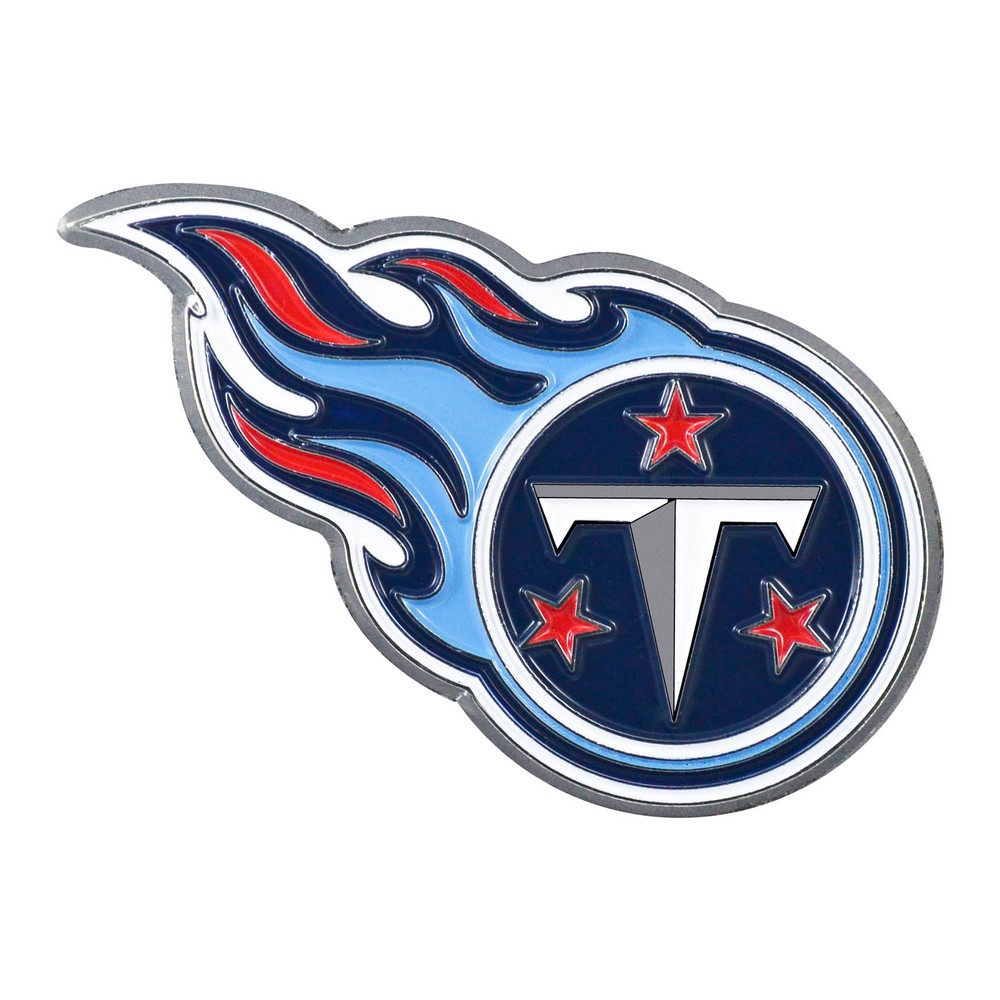 | Tennessee Titans 3D Color Metal Emblem Made of heavy duty chrome and feature a molded 3D team logo with true team colors Emblems resist the elements and look great for years Easy to install, just peel and stick, it's a breeze Can be removed if wanted, and it will not damage your vehicle Attaches without use of tools for an easy on and off Apply standard vehicle wax to keep hitch cover looking great for years to come NFL - Tennessee Titans in Tennessee NFL National Football League |