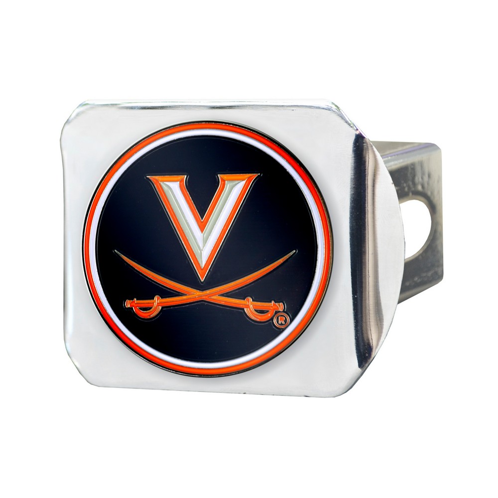 | Virginia Cavaliers Hitch Cover - 3D Color Emblem Completely wraps your hitch to keep all debris out Fits all 2 in. Class III hitches for a secure installation Made of chromed metal for a sleek design 3-D molded design to clearly outline the team logo Attaches without use of tools for an easy on and off; pin is not included Keeps your hitch clear of debris University of Virginia in Virginia |
