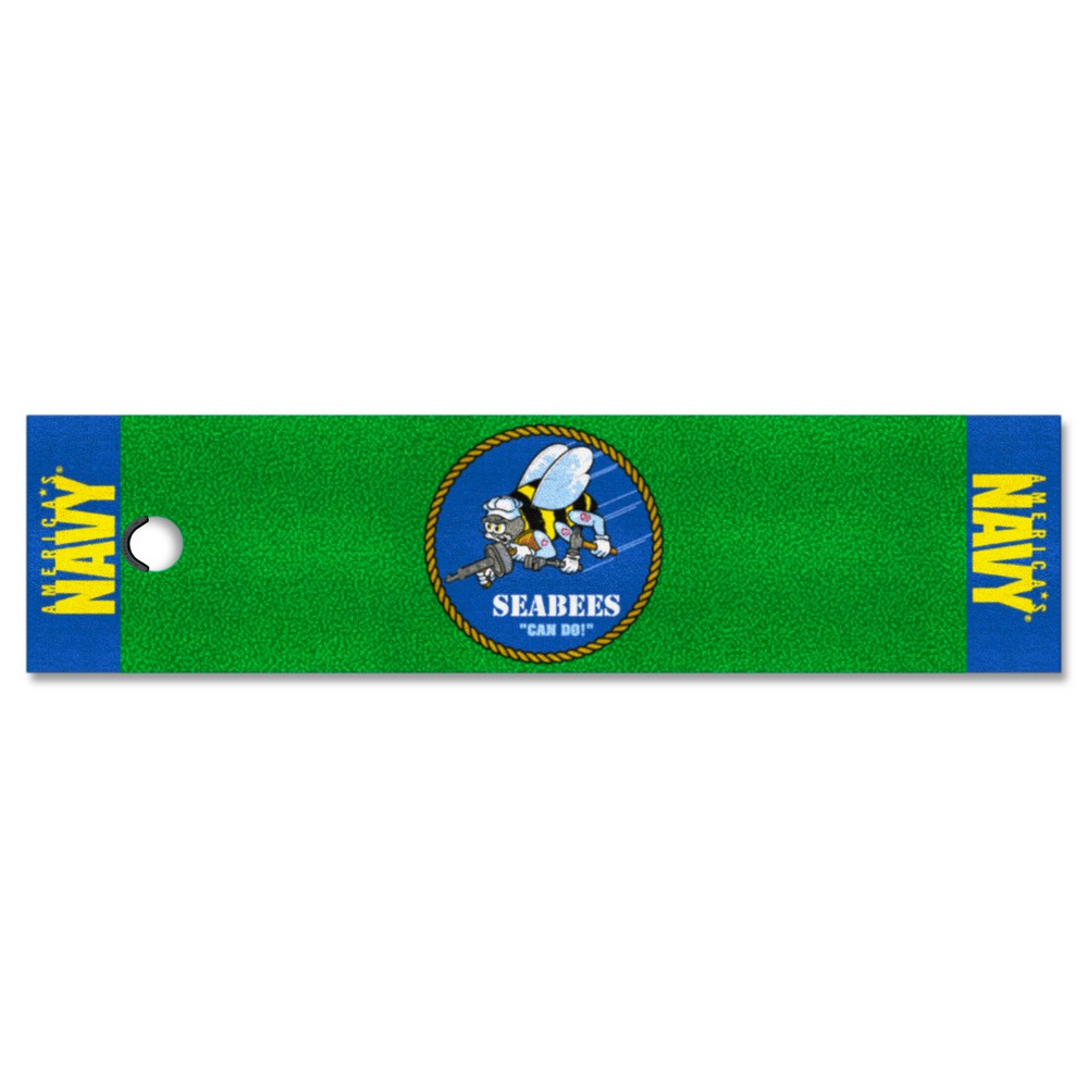| U.S. Navy - SEABEES Putting Green Mat - 1.5ft. x 6ft. Realistic putting surface (11* on golf Stimpmeter) Includes putting target barrier/backstop Durable vinyl backing keeps mat in place 100% Nylon Face Doubles as a runner when not in use Officially licensed and chromojet printed in true team colors U.S. Navy - SEABEES in Virginia |
