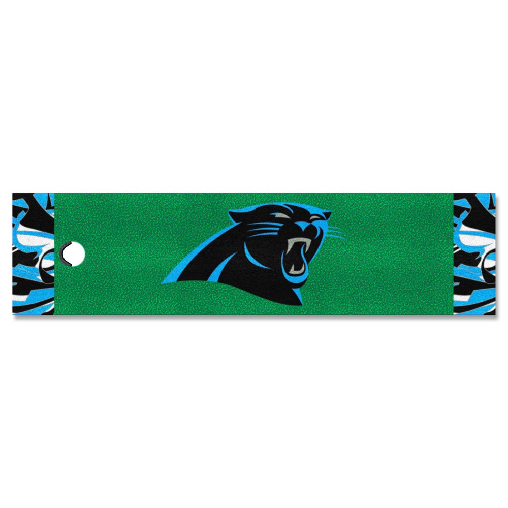 | Carolina Panthers Putting Green Mat - 1.5ft. x 6ft. Realistic putting surface (11* on golf Stimpmeter) Includes putting target barrier/backstop Durable vinyl backing keeps mat in place 100% Nylon Face Doubles as a runner when not in use Officially licensed and chromojet printed in true team colors NFL - Carolina Panthers in North Carolina NFL National Football League |