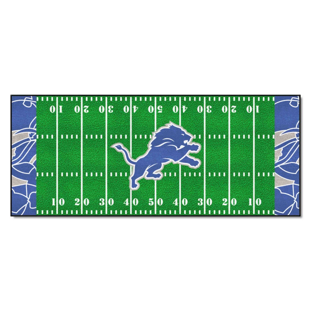 | Detroit Lions Football Field Runner Mat - 30in. x 72in. XFIT Design 9 Ounce, 100 % Nylon Face Recycled vinyl backing for a durable and longer-lasting product Machine made and tufted in the USA Non-skid backing with serged borders for added durability Machine washable; vacuum regularly and spot clean for any easy and quick clean Officially licensed and chromojet-printed in true team colors for vibrant, lasting color NFL - Detroit Lions in Michigan NFL National Football League |