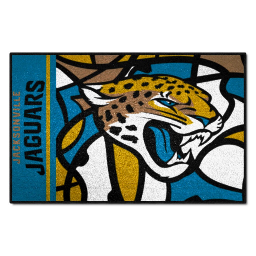 | Jacksonville Jaguars Starter Mat XFIT Design - 19in x 30in Accent Rug 9 Ounce, 100 % Nylon Face Recycled vinyl backing for a durable and longer-lasting product Machine made and tufted in the USA Non-skid backing with serged borders for added durability Machine washable; vacuum regularly and spot clean for any easy and quick clean Officially licensed and chromojet-printed in true team colors for vibrant, lasting color NFL - Jacksonville Jaguars in Florida NFL National Football League |