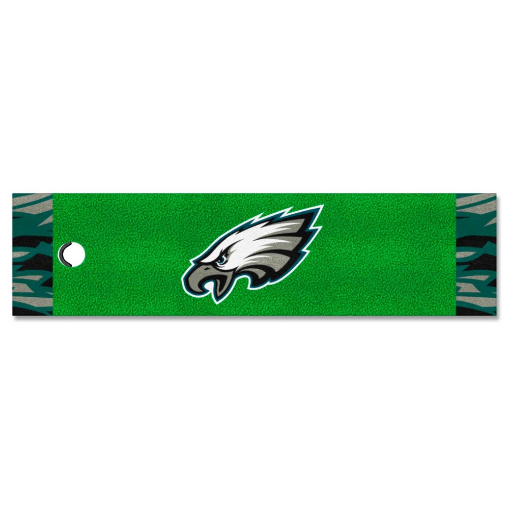 | Philadelphia Eagles Putting Green Mat - 1.5ft. x 6ft. Realistic putting surface (11* on golf Stimpmeter) Includes putting target barrier/backstop Durable vinyl backing keeps mat in place 100% Nylon Face Doubles as a runner when not in use Officially licensed and chromojet printed in true team colors NFL - Philadelphia Eagles in Pennsylvania NFL National Football League |