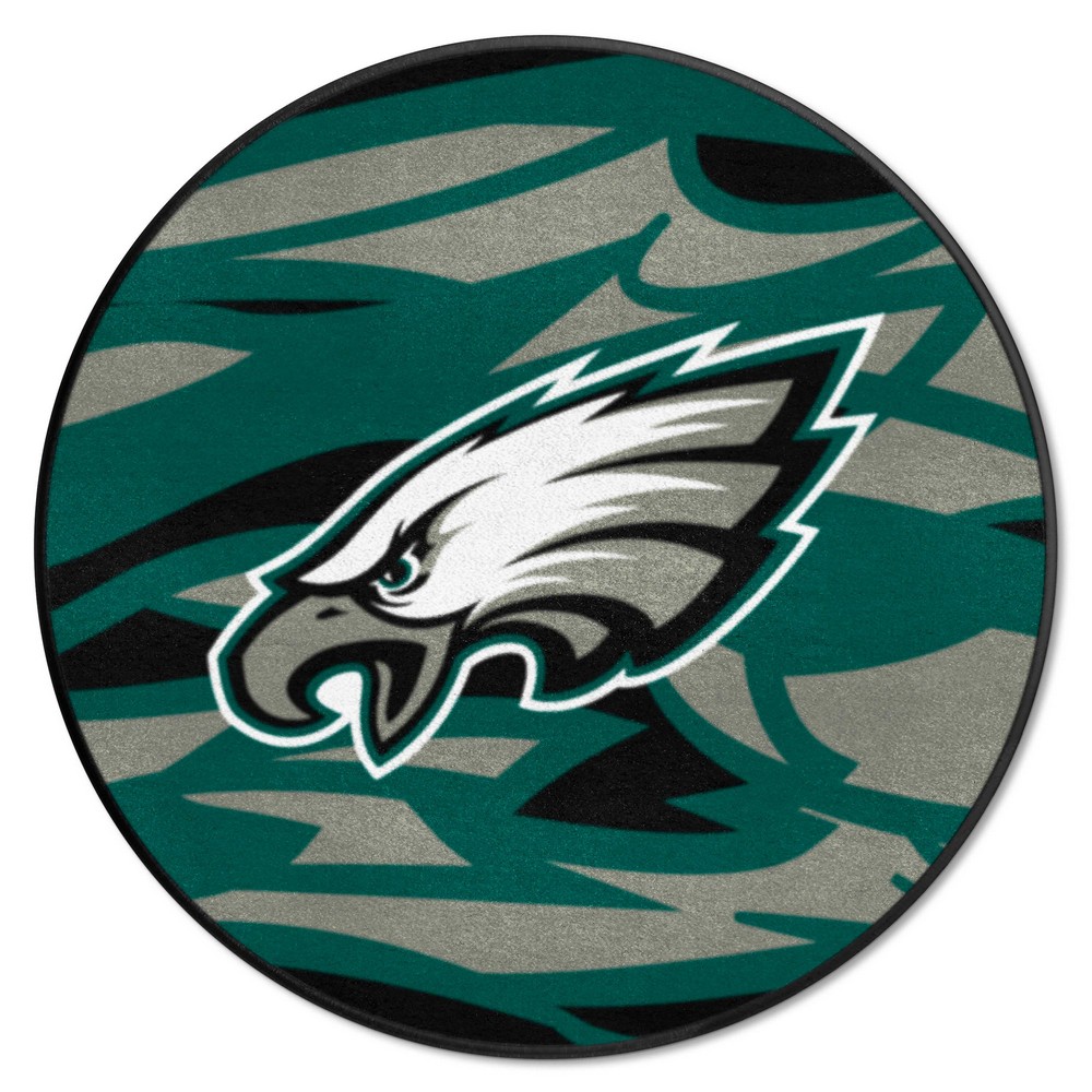 | Philadelphia Eagles Roundel Rug - 27in. Diameter XFIT Design 9 Ounce, 100 % Nylon Face Recycled vinyl backing for a durable and longer-lasting product Machine made and tufted in the USA Non-skid backing with taped borders for added durability Machine washable; vacuum regularly and spot clean for any easy and quick clean Officially licensed and chromojet-printed in true team colors for vibrant, lasting color NFL - Philadelphia Eagles in Pennsylvania NFL National Football League |