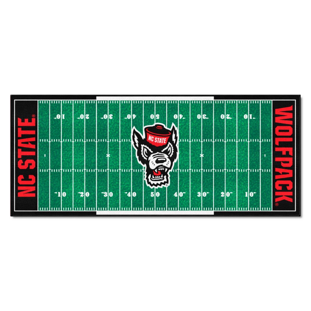 | NC State Wolfpack Field Runner Mat - 30in. x 72in., NCS Logo 9 Ounce, 100 % Nylon Face Recycled vinyl backing for a durable and longer-lasting product Machine made and tufted in the USA Non-skid backing with serged borders for added durability Machine washable; vacuum regularly and spot clean for any easy and quick clean Officially licensed and chromojet-printed in true team colors for vibrant, lasting color North Carolina State University in North Carolina |