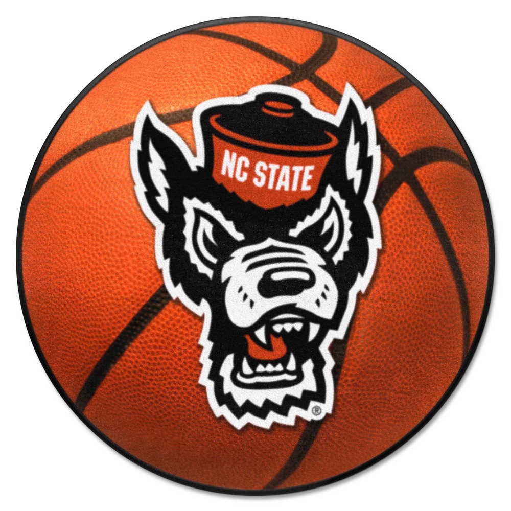 | NC State Wolfpack Basketball Rug - 27in. Diameter, Wolf Logo 9 Ounce, 100 % Nylon Face Recycled vinyl backing for a durable and longer-lasting product Machine made and tufted in the USA Non-skid backing with taped borders for added durability Machine washable; vacuum regularly and spot clean for any easy and quick clean Officially licensed and chromojet-printed in true team colors for vibrant, lasting color North Carolina State University in North Carolina |