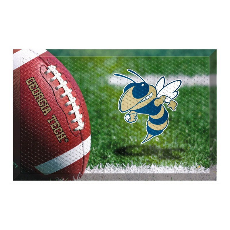 | Georgia Tech Yellow Jackets Rubber Scraper Door Mat, Buzz Logo Made of durable rubber Nibbed texture scrapes dirt, debris, and moisture from shoes Non-skid smooth backing keeps mat in place Dirt, debris, and moisture is trapped under the walking surface Easily cleaned with a water hose Mat features a realistic image Georgia Tech in Georgia WARNING: This product can expose you to chemicals including, DINP, which is known to the State of California to casue cancer. For more information, go to www.P65Warnings.ca.gov |