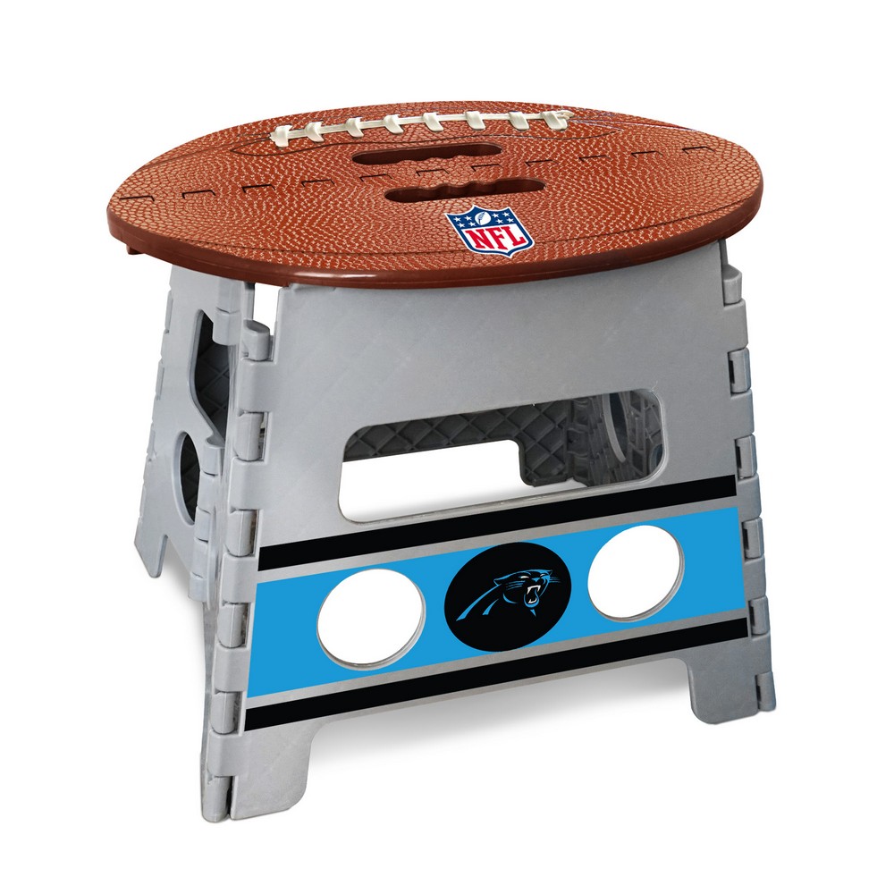 | Carolina Panthers Folding Step Stool - 13in. Rise Supports 250 lbs. Folds flat for easy storage Handle makes transportation easy Made of light weight durable plastic Rubber feet means stool stays in place True Team Colors NFL - Carolina Panthers in North Carolina NFL National Football League |