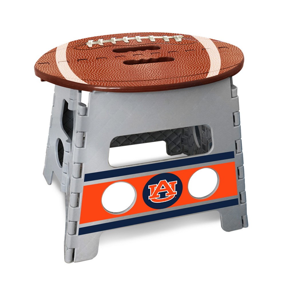 | Auburn Tigers Folding Step Stool - 13in. Rise Supports 250 lbs. Folds flat for easy storage Handle makes transportation easy Made of light weight durable plastic Rubber feet means stool stays in place True Team Colors Auburn University in Alabama |
