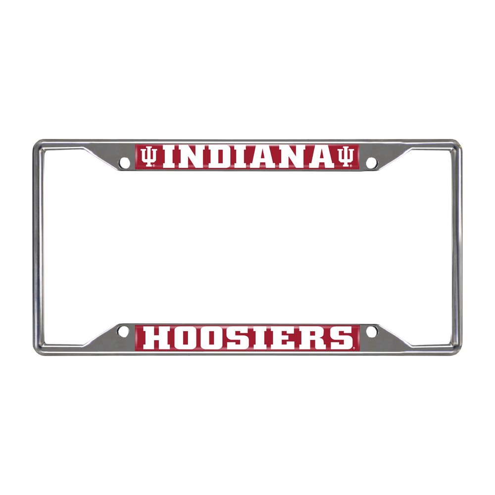 | Indiana Hooisers Chrome Metal License Plate Frame, 6.25in x 12.25in Made of chrome metal with a durable finish that resists the elements Team logo is domed and features vibrant colors that catch the eye 4 pre-drilled holes ensure a safe and secure fit, plus no rattling noises while driving Slimline design helps keep registration tag visible Fits most standard plates, measures 6.25" x 12.25" Screws not included Indiana University in Indiana |