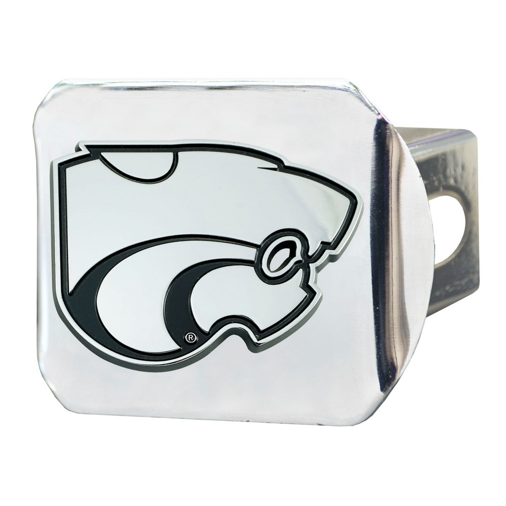 | Kansas State Wildcats Chrome Metal Hitch Cover with Chrome Metal 3D Emblem Completely wraps your hitch to keep all debris out Fits all 2 in. Class III hitches for a secure installation Made of chromed metal for a sleek design 3-D molded design to clearly outline the team logo Attaches without use of tools for an easy on and off; pin is not included Keeps your hitch clear of debris Kansas State University in Kansas |