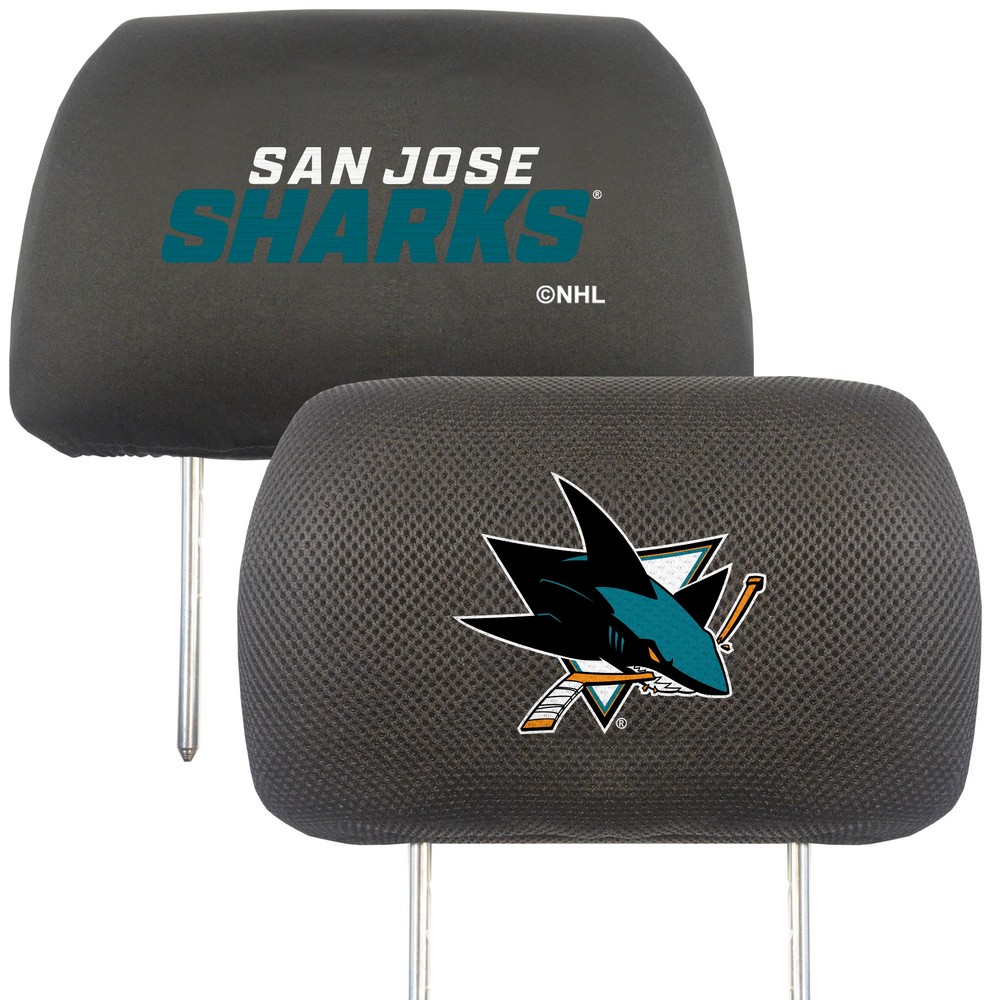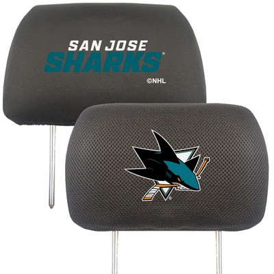 | San Jose Sharks Embroidered Head Rest Cover Set - 2 Pieces Made of comfortable material - mesh on one side and soft polyester on the other Logo is embroidered on one side and the team name is embroidered on the other Elastic band ensures a snug fit, so instillation is a breeze Machine washable, just let them air dry Sold in pairs Embroidered logo will not peel or fade NHL - San Jose Sharks in California NHL National Hockey League |