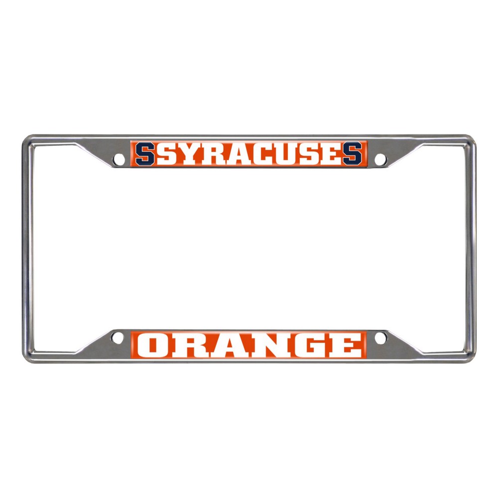 | Syracuse Orange Chrome Metal License Plate Frame, 6.25in x 12.25in Made of chrome metal with a durable finish that resists the elements Team logo is domed and features vibrant colors that catch the eye 4 pre-drilled holes ensure a safe and secure fit, plus no rattling noises while driving Slimline design helps keep registration tag visible Fits most standard plates, measures 6.25" x 12.25" Screws not included Syracuse University in New York |