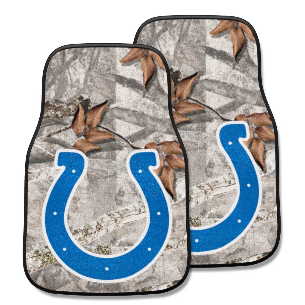 | Indianapolis Colts Camo Front Carpet Car Mat Set - 2 Pieces Universal size to fit all vehicle types 100% Nylon face that is chromojet-printed for true team colors Taped edges and vinyl backing add durability and longer life Nibbed backing to keep from skidding Made in the USA Machine washable for easy cleaning; do not put in dryer NFL - Indianapolis Colts in Indiana NFL National Football League |