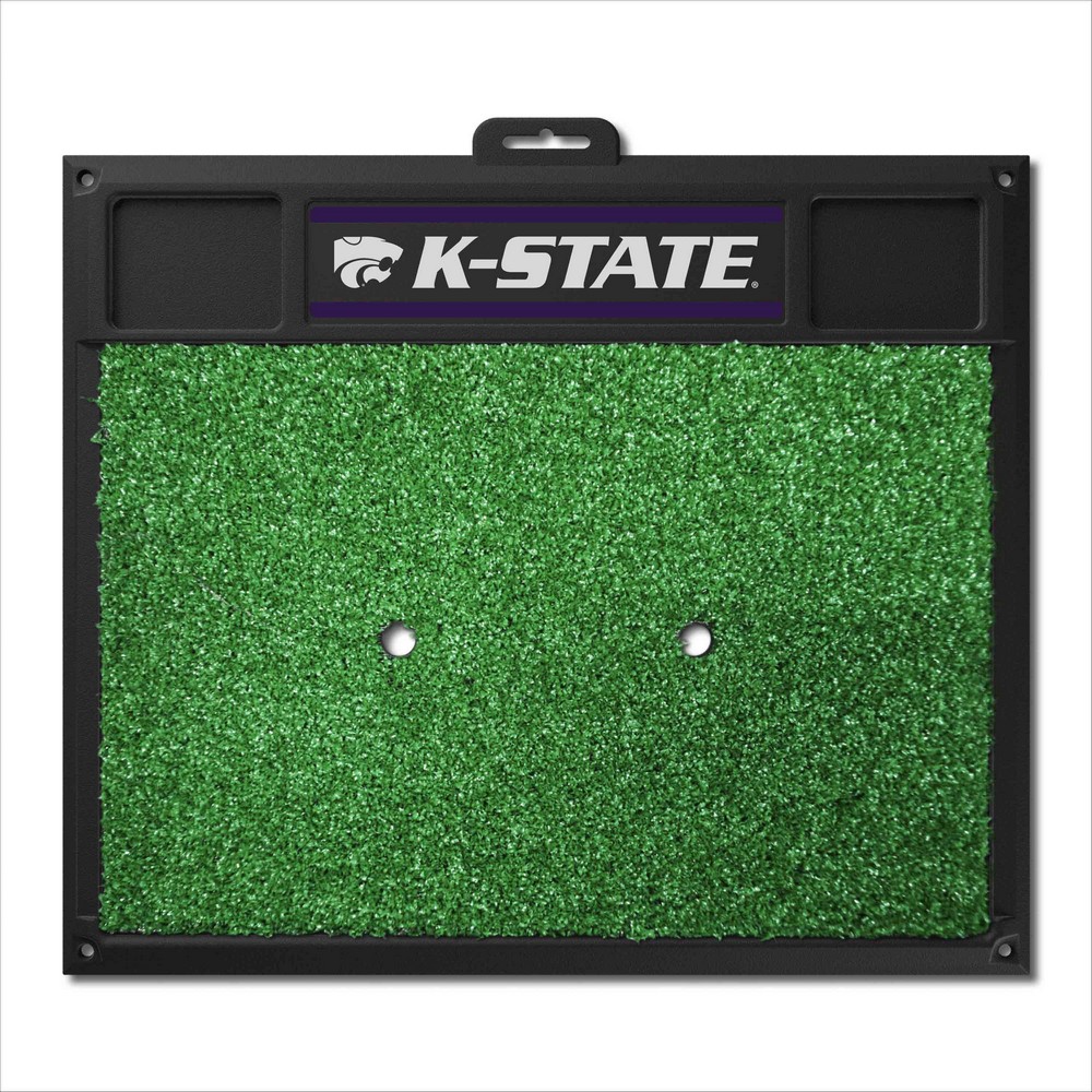 | Kansas State Wildcats Golf Hitting Mat Dual tee design for left and right handed golfers Removable tee also accepts wooden tees Stays in place; anchor mat down in all four corners with tees Cups to hold your balls and tees Made of heavy duty vinyl and has a realistic turf Saves your lawn from divots Kansas State University in Kansas |