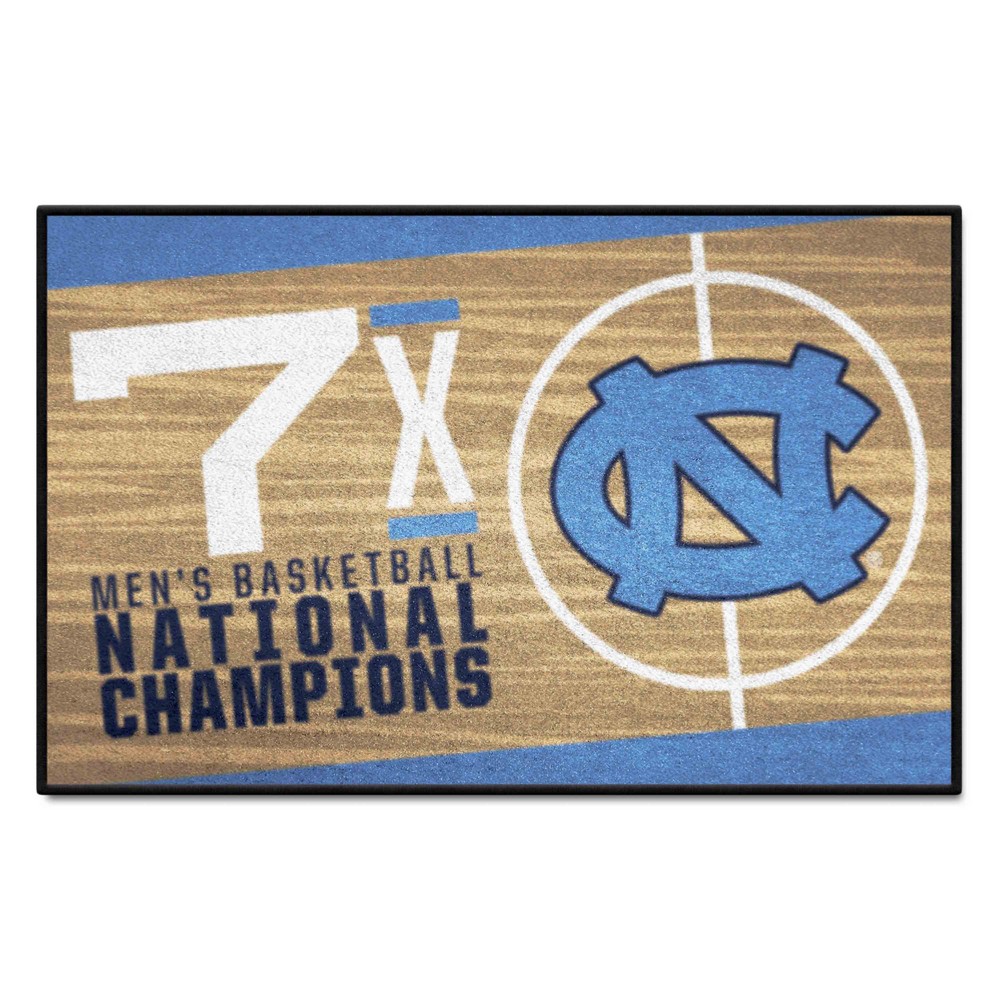 | North Carolina Tar Heels Dynasty Starter Mat Accent Rug - 19in. x 30in. 9 Ounce, 100 % Nylon Face Recycled vinyl backing for a durable and longer-lasting product Machine made and tufted in the USA Non-skid backing with serged borders for added durability Machine washable; vacuum regularly and spot clean for any easy and quick clean Officially licensed and chromojet-printed in true team colors for vibrant, lasting color University of North Carolina at Chapel Hill in North Carolina |