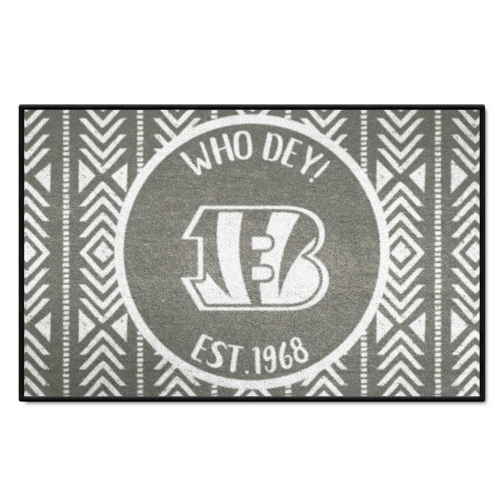 | Cincinnati Bengals Southern Style Starter Mat Accent Rug - 19in. x 30in. 9 Ounce, 100 % Nylon Face Recycled vinyl backing for a durable and longer-lasting product Machine made and tufted in the USA Non-skid backing with serged borders for added durability Machine washable; vacuum regularly and spot clean for any easy and quick clean Officially licensed and chromojet-printed in true team colors for vibrant, lasting color NFL - Cincinnati Bengals in Ohio NFL National Football League |