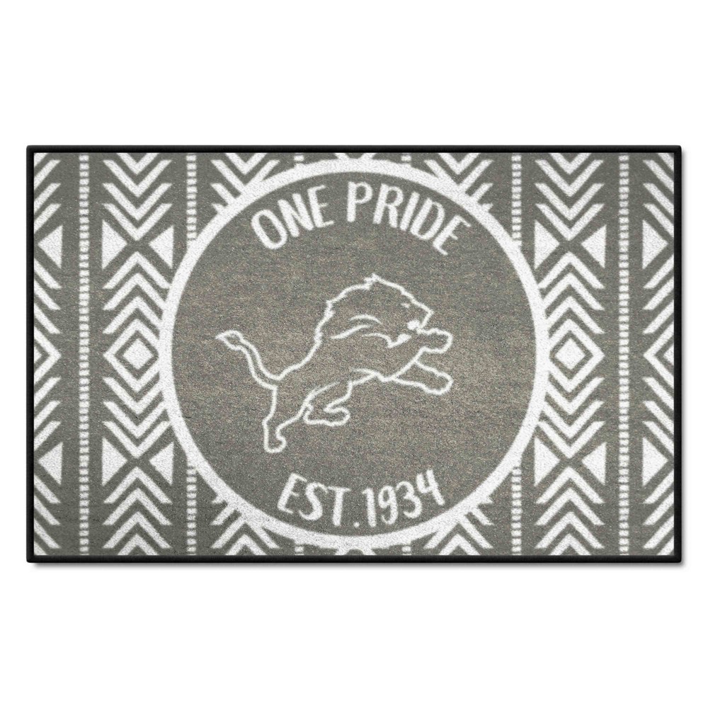 | Detroit Lions Southern Style Starter Mat Accent Rug - 19in. x 30in. 9 Ounce, 100 % Nylon Face Recycled vinyl backing for a durable and longer-lasting product Machine made and tufted in the USA Non-skid backing with serged borders for added durability Machine washable; vacuum regularly and spot clean for any easy and quick clean Officially licensed and chromojet-printed in true team colors for vibrant, lasting color NFL - Detroit Lions in Michigan NFL National Football League |