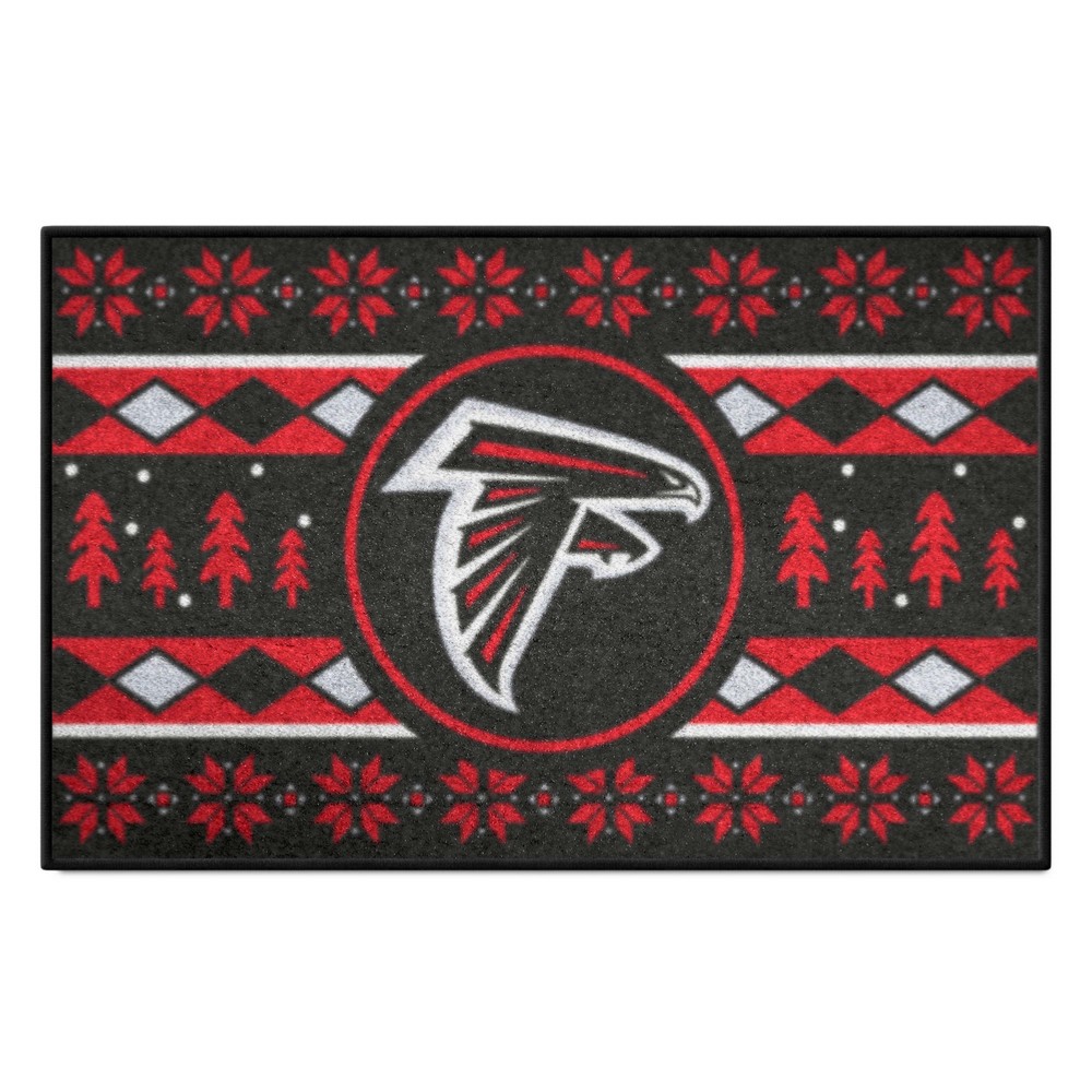 | Atlanta Falcons Holiday Sweater Starter Mat Accent Rug - 19in. x 30in. 9 Ounce, 100 % Nylon Face Recycled vinyl backing for a durable and longer-lasting product Machine made and tufted in the USA Non-skid backing with serged borders for added durability Machine washable; vacuum regularly and spot clean for any easy and quick clean Officially licensed and chromojet-printed in true team colors for vibrant, lasting color NFL - Atlanta Falcons in Georgia NFL National Football League |