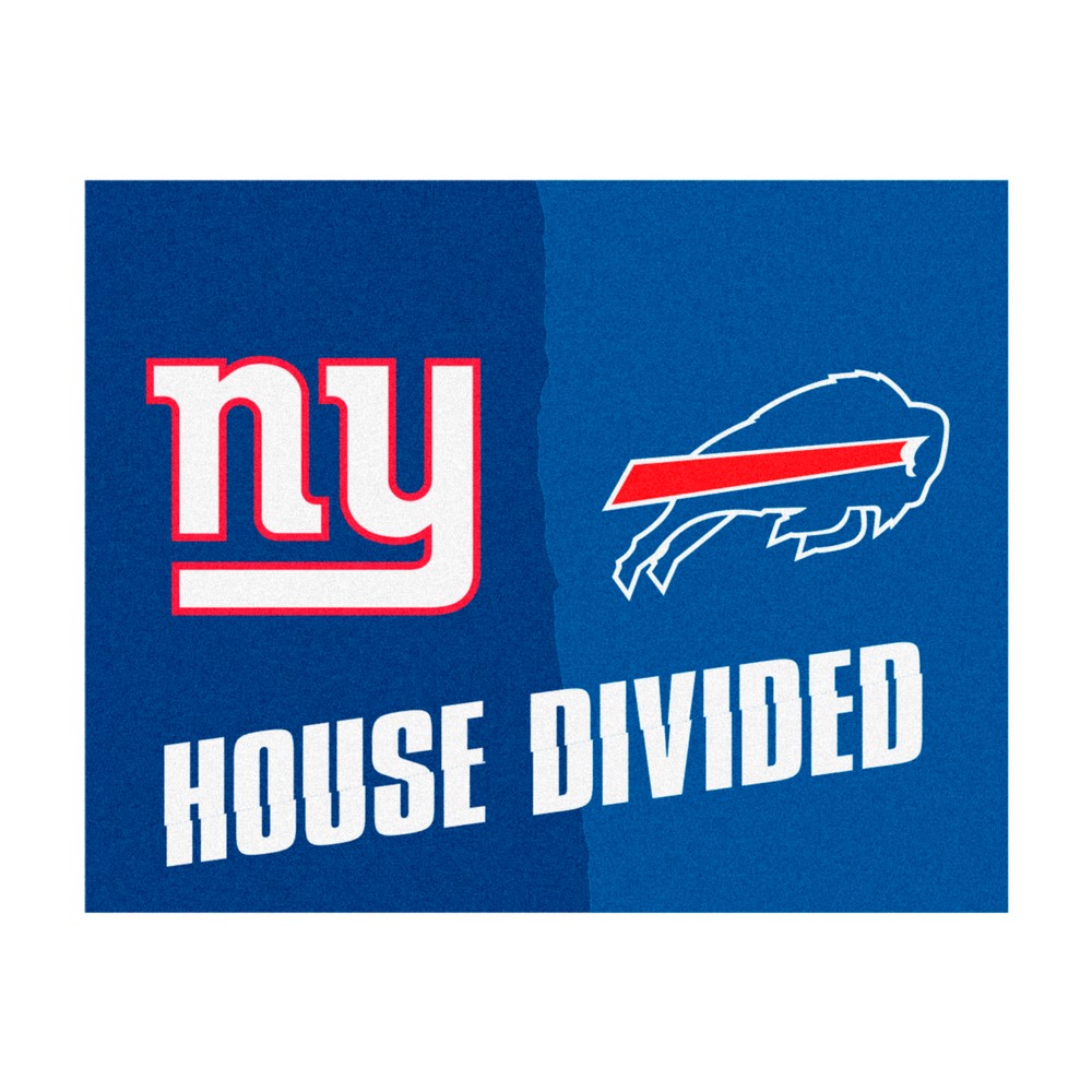 | NFL House Divided - Giants / Bills House Divided Rug - 34 in. x 42.5 in. 9 Ounce, 100 % Nylon Face Recycled vinyl backing for a durable and longer-lasting product Machine made and tufted in the USA Non-skid backing with serged borders for added durability Machine washable; vacuum regularly and spot clean for any easy and quick clean Officially licensed and chromojet-printed in true team colors for vibrant, lasting color NFL House Divided - Giants / Bills in N/A NFL National Football League |