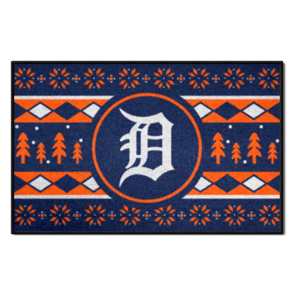 | Detroit Tigers Holiday Sweater Starter Mat Accent Rug - 19in. x 30in. 9 Ounce, 100 % Nylon Face Recycled vinyl backing for a durable and longer-lasting product Machine made and tufted in the USA Non-skid backing with serged borders for added durability Machine washable; vacuum regularly and spot clean for any easy and quick clean Officially licensed and chromojet-printed in true team colors for vibrant, lasting color MLB - Detroit Tigers in Michigan MLB Major League Baseball |