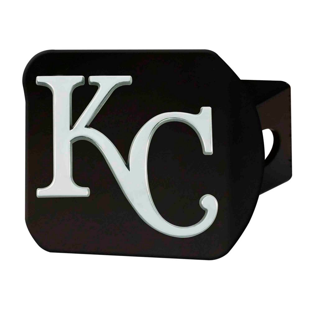 | Kansas City Royals Black Metal Hitch Cover with Metal Chrome 3D Emblem Completely wraps your hitch to keep all debris out Fits all 2 in. Class III hitches for a secure installation Made of metal with a black finish for added style and protection 3-D molded design to clearly outline the team logo Attaches without use of tools for an easy on and off; pin is not included Keeps your hitch clear of debris MLB - Kansas City Royals in Missouri MLB Major League Baseball |