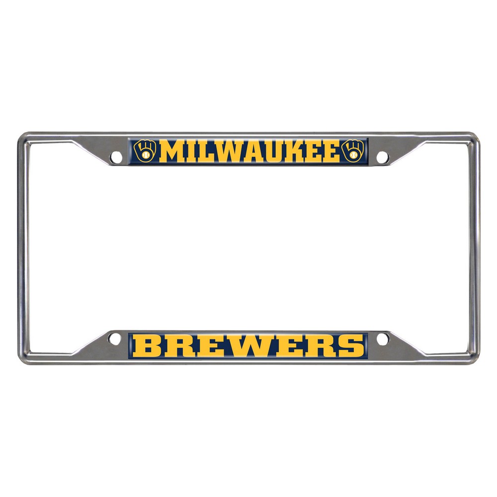 | Milwaukee Brewers Chrome Metal License Plate Frame, 6.25in x 12.25in Made of chrome metal with a durable finish that resists the elements Team logo is domed and features vibrant colors that catch the eye 4 pre-drilled holes ensure a safe and secure fit, plus no rattling noises while driving Slimline design helps keep registration tag visible Fits most standard plates, measures 6.25" x 12.25" Screws not included MLB - Milwaukee Brewers in Wisconsin MLB Major League Baseball |