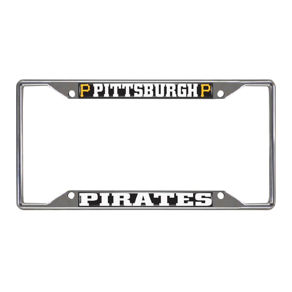 | Pittsburgh Pirates Chrome Metal License Plate Frame, 6.25in x 12.25in Made of chrome metal with a durable finish that resists the elements Team logo is domed and features vibrant colors that catch the eye 4 pre-drilled holes ensure a safe and secure fit, plus no rattling noises while driving Slimline design helps keep registration tag visible Fits most standard plates, measures 6.25" x 12.25" Screws not included MLB - Pittsburgh Pirates in Pennsylvania MLB Major League Baseball |