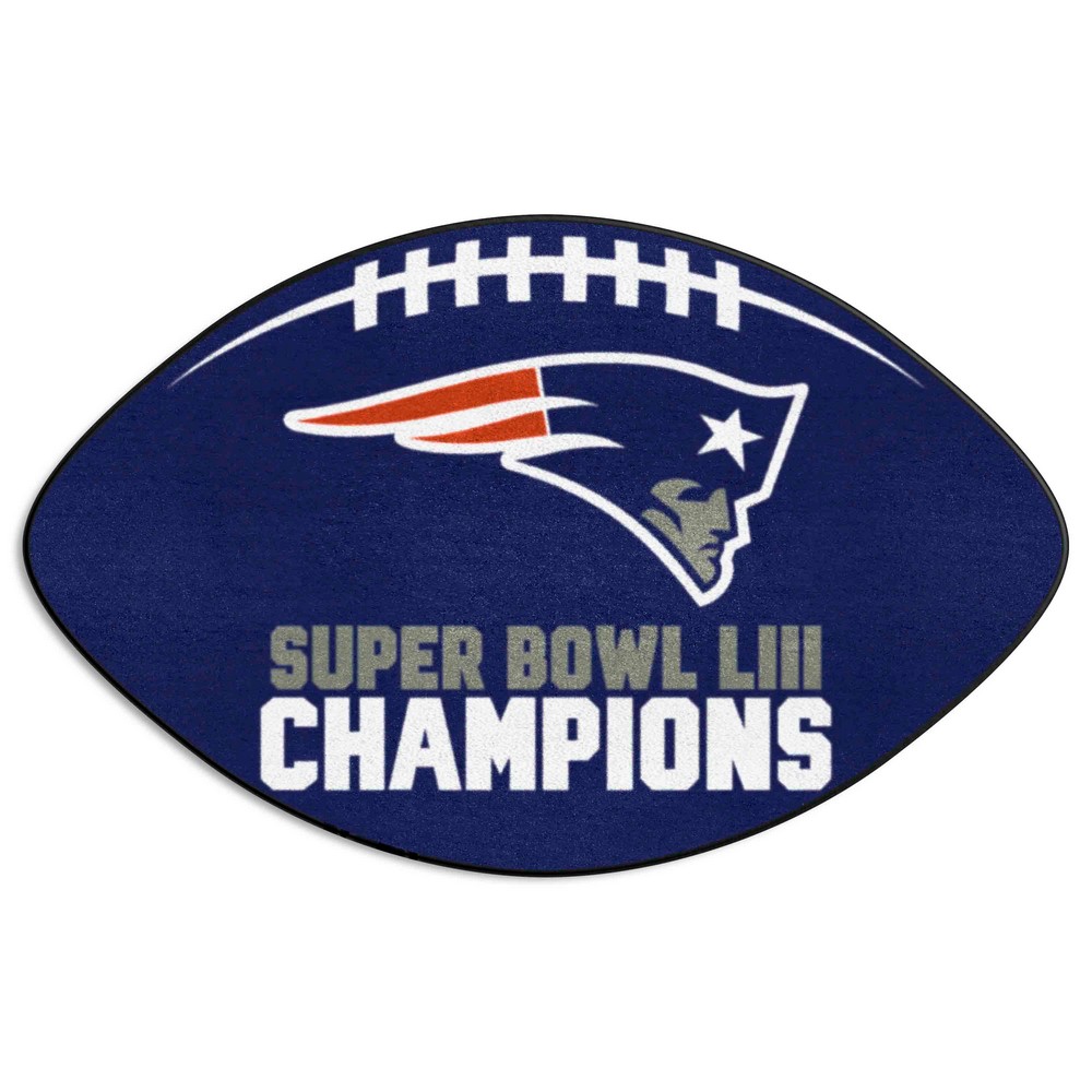 | New England Patriots Football Rug - 20.5in. x 32.5in., 2019 Super Bowl LIII Champions 9 Ounce, 100 % Nylon Face Recycled vinyl backing for a durable and longer-lasting product Machine made and tufted in the USA Non-skid backing with taped borders for added durability Machine washable; vacuum regularly and spot clean for any easy and quick clean Officially licensed and chromojet-printed in true team colors for vibrant, lasting color NFL - New England Patriots in Massachusetts NFL National Football League |