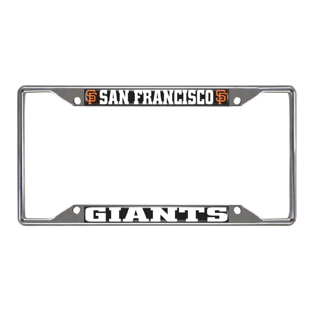 | San Francisco Giants Chrome Metal License Plate Frame, 6.25in x 12.25in Made of chrome metal with a durable finish that resists the elements Team logo is domed and features vibrant colors that catch the eye 4 pre-drilled holes ensure a safe and secure fit, plus no rattling noises while driving Slimline design helps keep registration tag visible Fits most standard plates, measures 6.25" x 12.25" Screws not included MLB - San Francisco Giants in California MLB Major League Baseball |