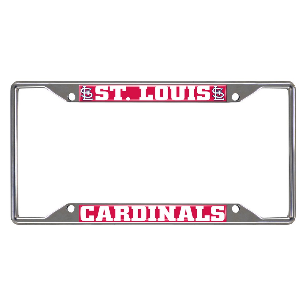 | St. Louis Cardinals Chrome Metal License Plate Frame, 6.25in x 12.25in Made of chrome metal with a durable finish that resists the elements Team logo is domed and features vibrant colors that catch the eye 4 pre-drilled holes ensure a safe and secure fit, plus no rattling noises while driving Slimline design helps keep registration tag visible Fits most standard plates, measures 6.25" x 12.25" Screws not included MLB - St. Louis Cardinals in Missouri MLB Major League Baseball |