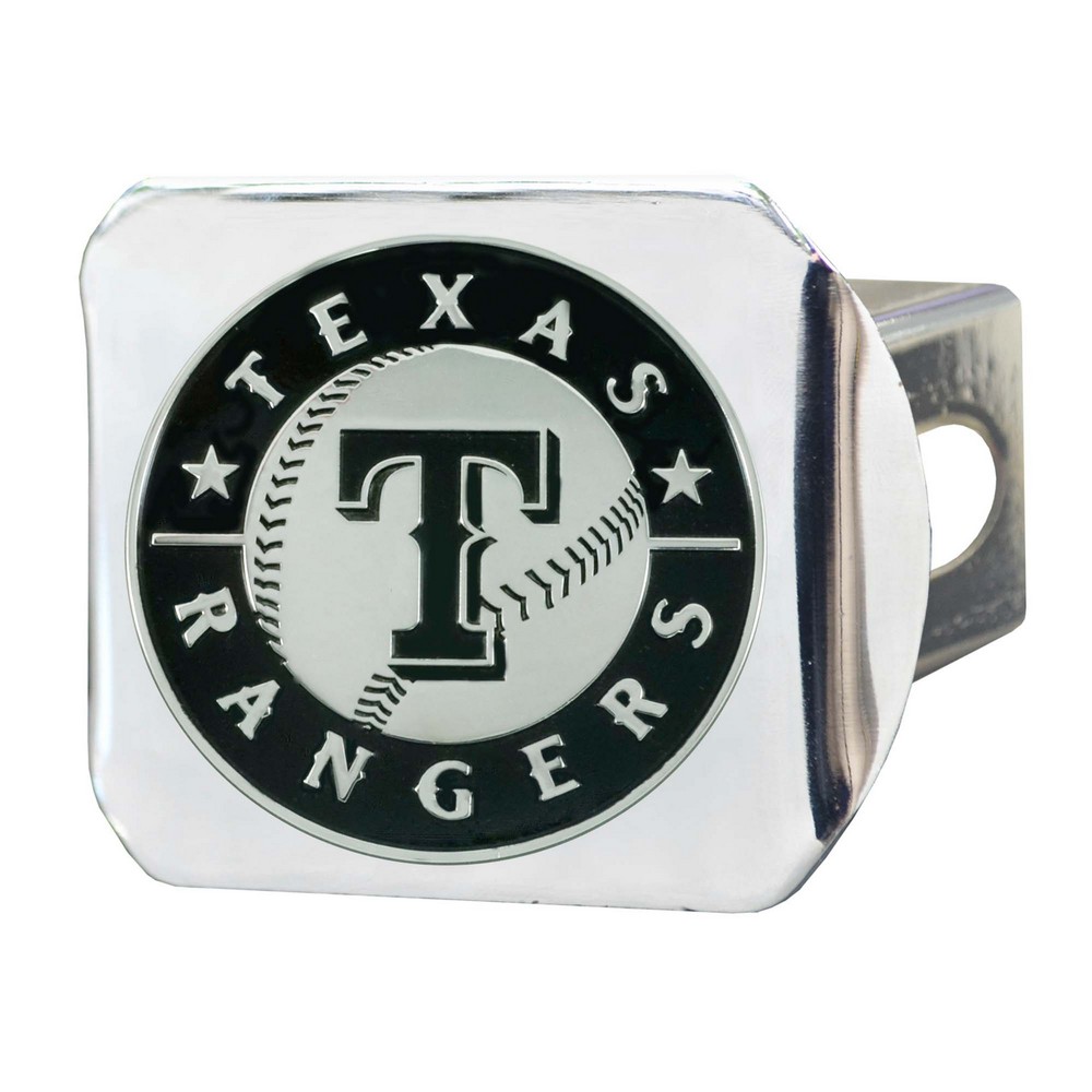 | Texas Rangers Chrome Metal Hitch Cover with Chrome Metal 3D Emblem Completely wraps your hitch to keep all debris out Fits all 2 in. Class III hitches for a secure installation Made of chromed metal for a sleek design 3-D molded design to clearly outline the team logo Attaches without use of tools for an easy on and off; pin is not included Keeps your hitch clear of debris MLB - Texas Rangers in Texas MLB Major League Baseball |