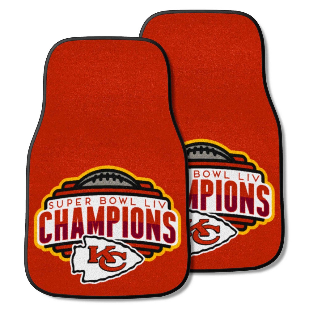 | Kansas City Chiefs Front Carpet Car Mat Set - 2 Pieces, 2020 Super Bowl LIV Champions Universal size to fit all vehicle types 100% Nylon face that is chromojet-printed for true team colors Taped edges and vinyl backing add durability and longer life Nibbed backing to keep from skidding Made in the USA Machine washable for easy cleaning; do not put in dryer NFL - Kansas City Chiefs in Missouri NFL National Football League |