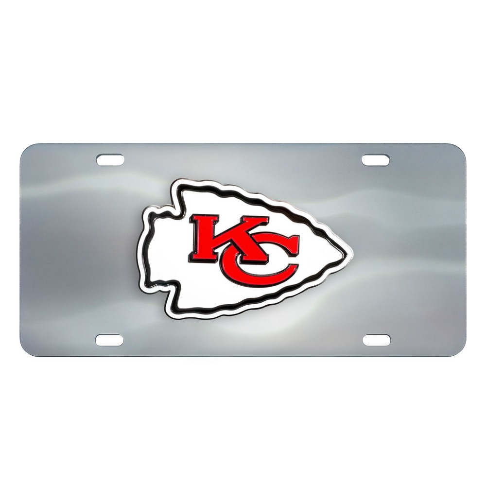| Kansas City Chiefs 3D Stainless Steel License Plate Made of stainless steel with a durable finish that resists the elements Vibrant colors that last Easy to install 4 pre-drilled holes ensure a safe and secure fit, plus no rattling noises while driving Apply standard vehicle wax to keep license plate looking great for years to come Officially licensed true team colors NFL - Kansas City Chiefs in Missouri NFL National Football League |