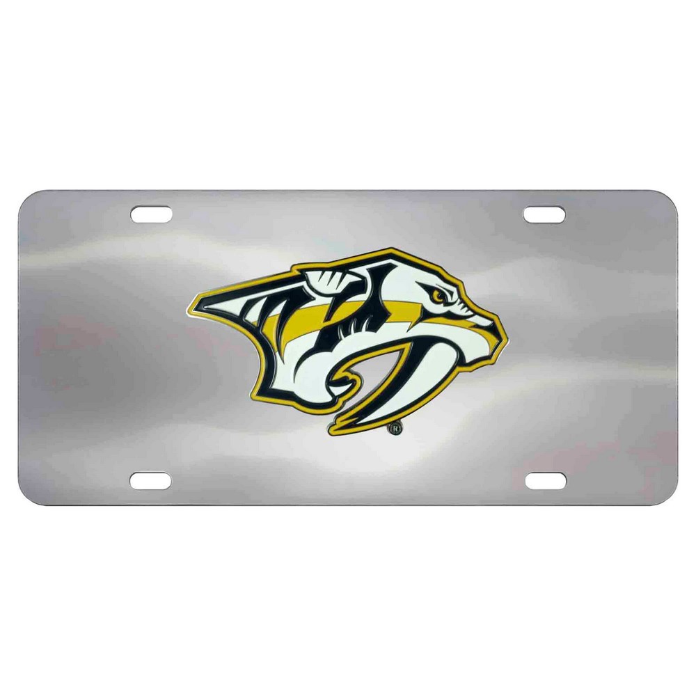 | Nashville Predators 3D Stainless Steel License Plate Made of stainless steel with a durable finish that resists the elements Vibrant colors that last Easy to install 4 pre-drilled holes ensure a safe and secure fit, plus no rattling noises while driving Apply standard vehicle wax to keep license plate looking great for years to come Officially licensed true team colors NHL - Nashville Predators in Tennessee NHL National Hockey League |