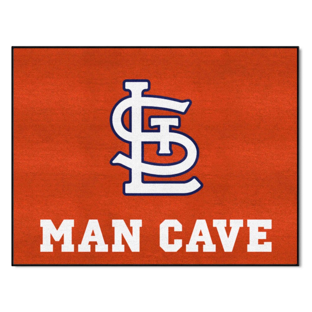 | St. Louis Cardinals Man Cave All-Star Rug - 34 in. x 42.5 in. 9 Ounce, 100 % Nylon Face Recycled vinyl backing for a durable and longer-lasting product Machine made and tufted in the USA Non-skid backing with serged borders for added durability Machine washable; vacuum regularly and spot clean for any easy and quick clean Officially licensed and chromojet-printed in true team colors for vibrant, lasting color MLB - St. Louis Cardinals in Missouri MLB Major League Baseball |