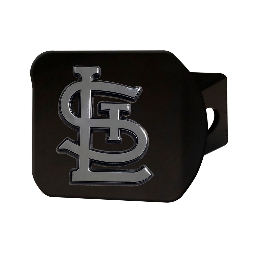 | St. Louis Cardinals Black Metal Hitch Cover with Metal Chrome 3D Emblem Completely wraps your hitch to keep all debris out Fits all 2 in. Class III hitches for a secure installation Made of metal with a black finish for added style and protection 3-D molded design to clearly outline the team logo Attaches without use of tools for an easy on and off; pin is not included Keeps your hitch clear of debris MLB - St. Louis Cardinals in Missouri MLB Major League Baseball |