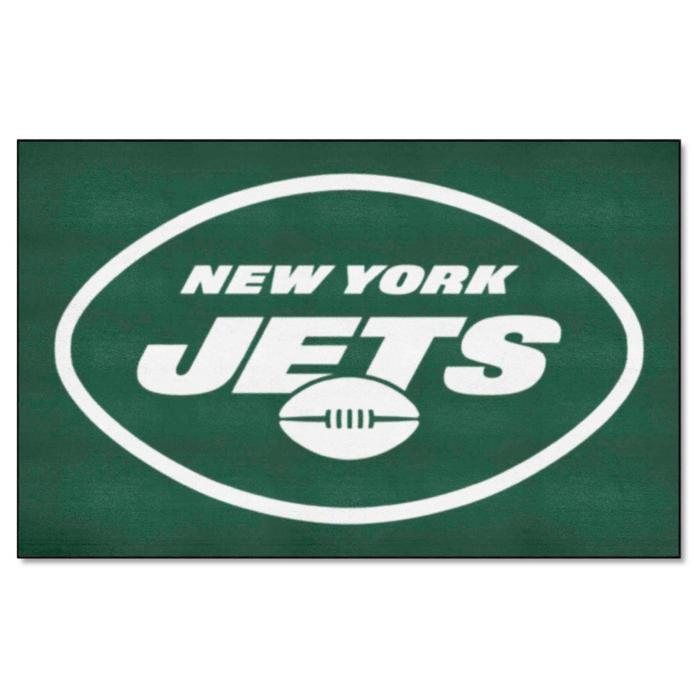 | New York Jets Ulti-Mat Rug - 5ft. x 8ft. 9 Ounce, 100 % Nylon Face Recycled vinyl backing for a durable and longer-lasting product Machine made and tufted in the USA Non-skid backing with serged borders for added durability Machine washable; vacuum regularly and spot clean for any easy and quick clean Officially licensed and chromojet-printed in true team colors for vibrant, lasting color NFL - New York Jets in New Jersey NFL National Football League |