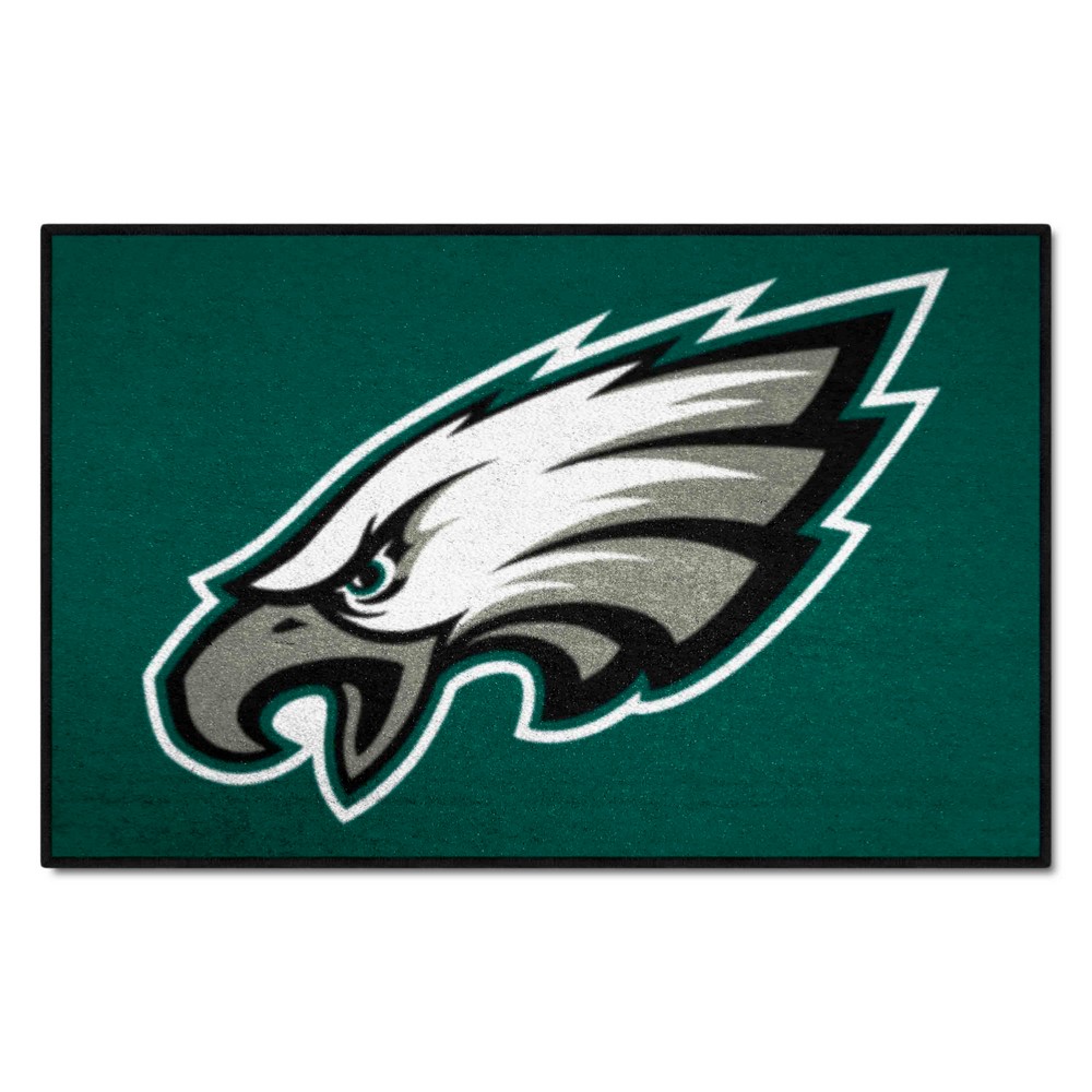 | Philadelphia Eagles Starter Mat Accent Rug - 19in. x 30in. 9 Ounce, 100 % Nylon Face Recycled vinyl backing for a durable and longer-lasting product Machine made and tufted in the USA Non-skid backing with serged borders for added durability Machine washable; vacuum regularly and spot clean for any easy and quick clean Officially licensed and chromojet-printed in true team colors for vibrant, lasting color NFL - Philadelphia Eagles in Pennsylvania NFL National Football League |
