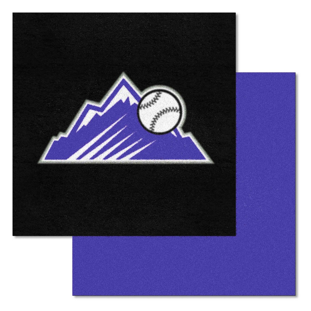 | Colorado Rockies Alternate Logo Team Carpet Tiles - 45 Sq Ft. Easy to install, adhesive strips included No padding or underlay required 10 team and 10 accent color tiles Smooth recycled backing 9 Ounce, 100 % Nylon Face Covers 45 square feet when assembled MLB - Colorado Rockies in Colorado MLB Major League Baseball |