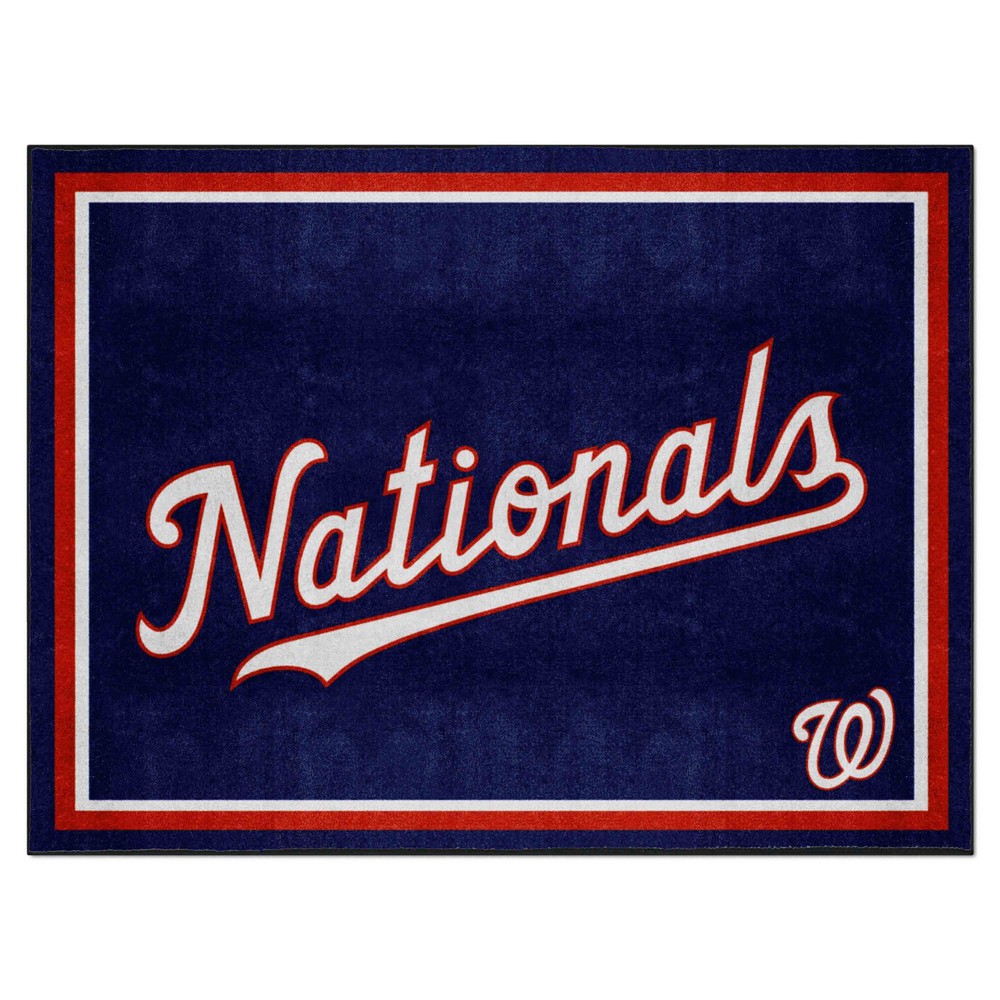 | Washington Nationals 8ft. x 10 ft. Plush Area Rug 23.5 oz., 100% Nylon Face Latex backing for a durable and longer-lasting product Machine made in the USA Non-skid backing to ensure stability Vacuum regularly and spot clean Chromojet-printed in true team colors MLB - Washington Nationals in District of Columbia MLB Major League Baseball |