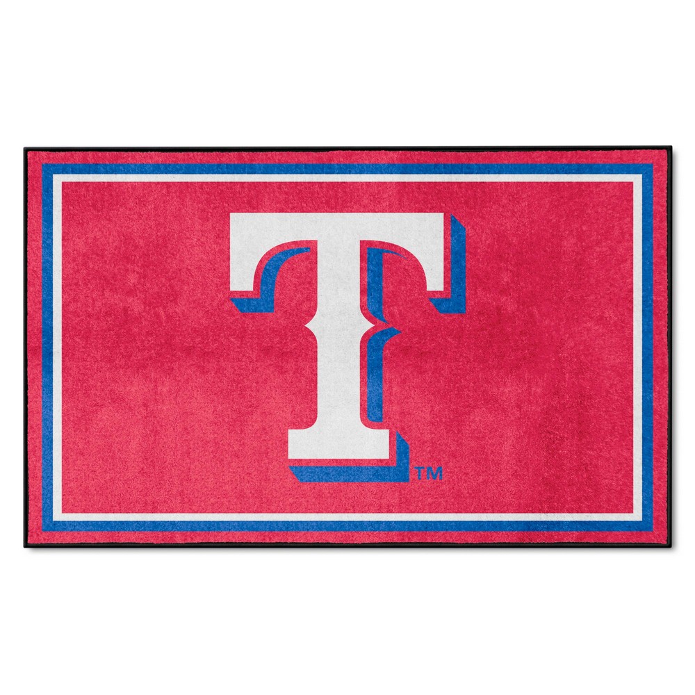 | Texas Rangers 4ft. x 6ft. Plush Area Rug 23.5 oz., 100% Nylon Face Latex backing for a durable and longer-lasting product Machine made in the USA Non-skid backing to ensure stability Vacuum regularly and spot clean Chromojet-printed in true team colors MLB - Texas Rangers in Texas MLB Major League Baseball |