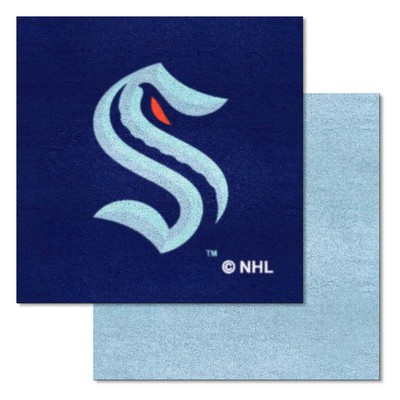 | Seattle Kraken Team Carpet Tiles - 45 Sq Ft. Easy to install, adhesive strips included No padding or underlay required 10 team and 10 accent color tiles Smooth recycled backing 9 Ounce, 100 % Nylon Face Covers 45 square feet when assembled NHL - Seattle Kraken in Washington NHL National Hockey League |