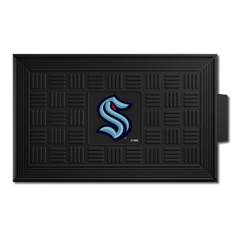 | Seattle Kraken Heavy Duty Vinyl Medallion Door Mat - 19.5in. x 31in. 3-D logo molded in true team colors Made of 100% vinyl for a durable and long-lasting door mat Durable weather-resistant door mat withstands seasonal change, use outside all year long Cleans your shoes as the ridges scrape the dirt off and the deep reservoirs hold and drain water through its corner slots Designed for both indoor and outdoor use Clean with a garden hose for easy maintenance NHL - Seattle Kraken in Washington WARNING: This product can expose you to chemicals including, DINP, which is known to the State of California to casue cancer. For more information, go to www.P65Warnings.ca.gov NHL National Hockey League |