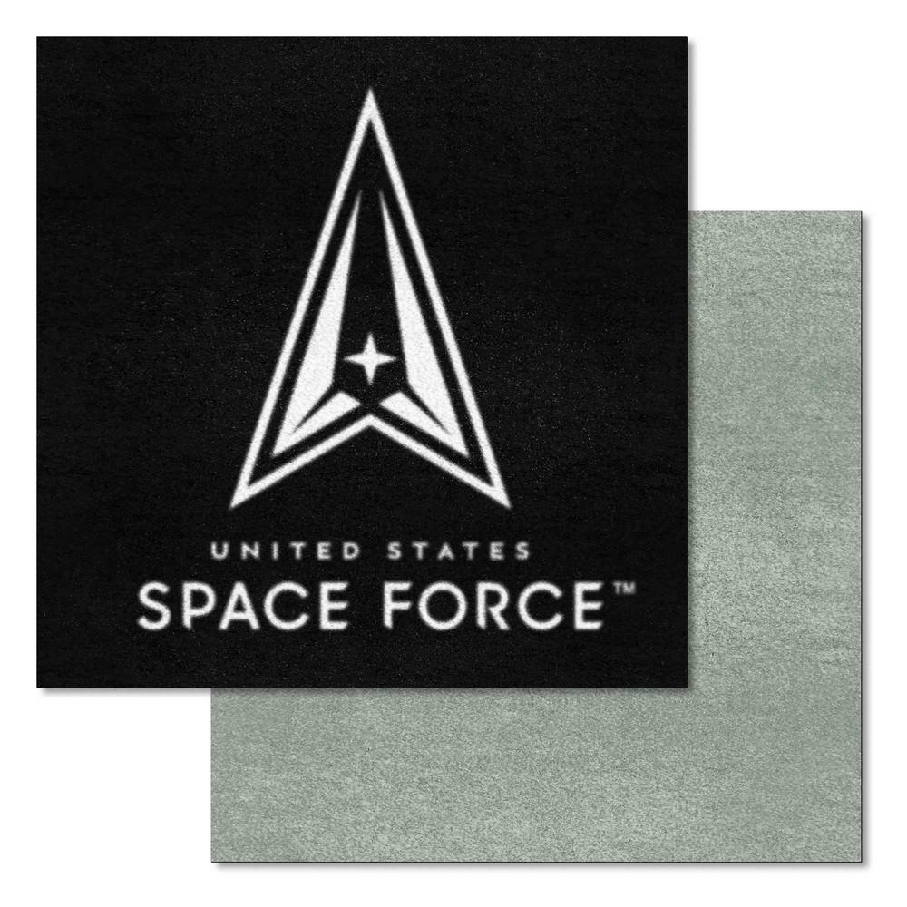 | U.S. Space Force Team Carpet Tiles - 45 Sq Ft. Easy to install, adhesive strips included No padding or underlay required 10 team and 10 accent color tiles Smooth recycled backing 9 Ounce, 100 % Nylon Face Covers 45 square feet when assembled U.S. Space Force in N/A |