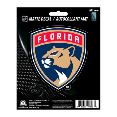 | Florida Panthers Matte Decal Sticker Includes 1 large decal Adhesive decals are die-cut to shape Printed on premium vinyl material UV resistant lamination for outstanding durability Great for cars, laptops, coolers and other hard surfaces Approximately 5in x 6.25in NHL - Florida Panthers in Florida NHL National Hockey League |